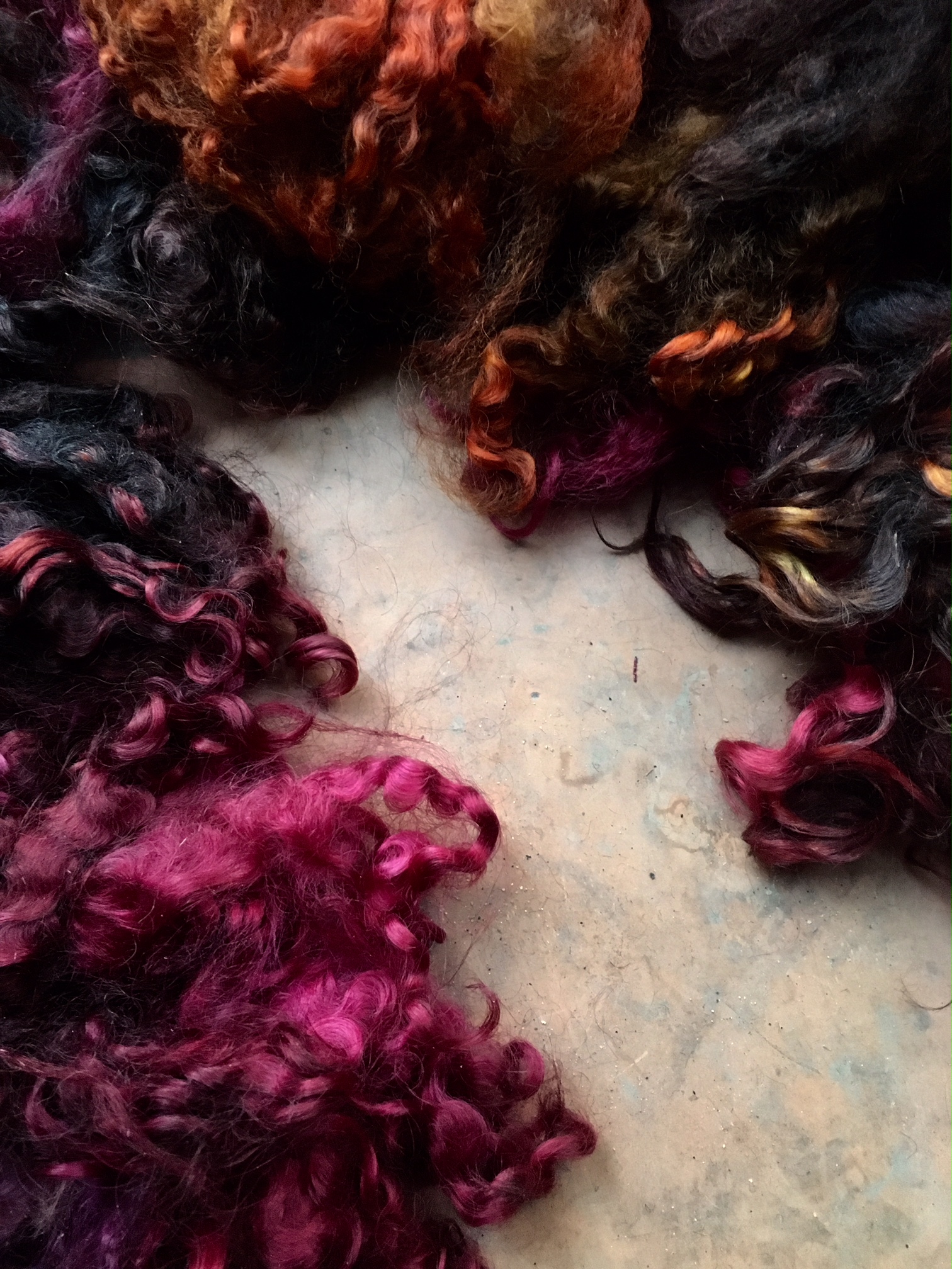 Extremely rich colors and a new color way! English Leicester, Teeswater locks, silk, threads, Angelina and more. The fleeces are high lustre and have a beautiful handle. You won’t be disappointed. Shipping is 3.75 within the US and if it fails to charge you, we’ll bill you. Outside the US is actual fees and will also be billed.